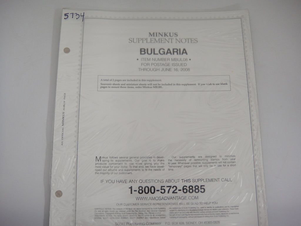 Minkus 2008 Bulgaria Stamp Album Supplement #MBUL08 New Old Stock
