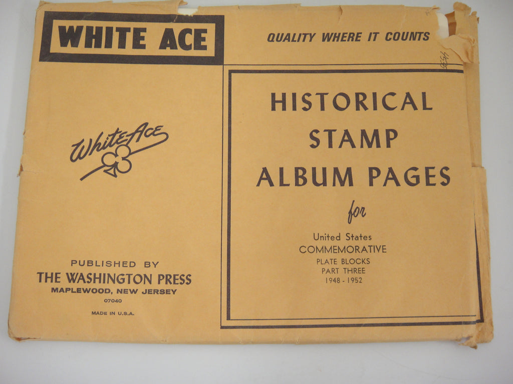 Brand: White Ace Series: Commemorative Plate Blocks Country: United States Year: 1948-1952 Pages: Product#: Supplement#: 3 Stock#: 4535 Notes: 8.5" x 11" for 3-ring binders; new old stock