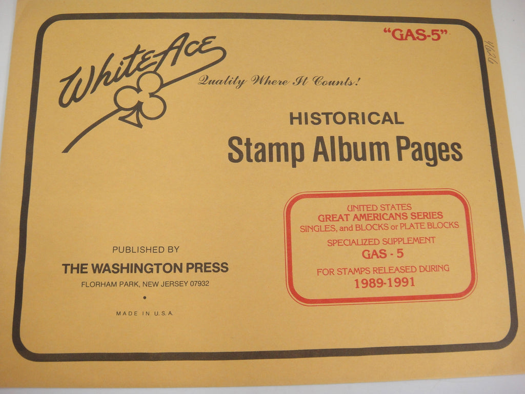 Brand: White Ace Series: Great American Series Country: United States Year: 1989-1991 Pages: 3 Product#: GAS-5 Supplement#: Stock#: 4626 Notes: singles, blocks or plate blocks