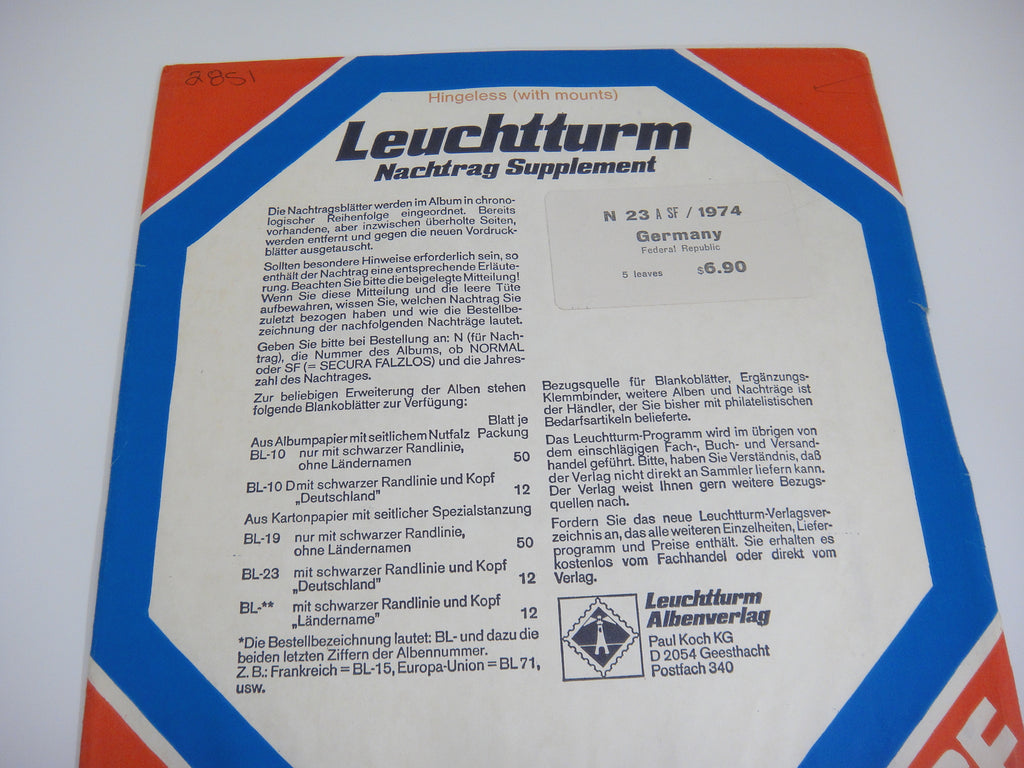 Lighthouse 1974 West Germany Hingeless Stamp Album Supplement N23ASF74