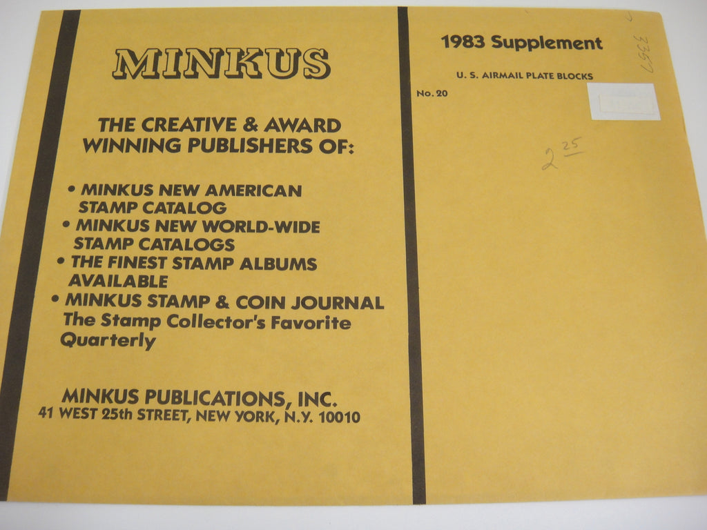 Minkus 1983 US Airmail Plate Blocks Stamp Supplement 20 United States NOS