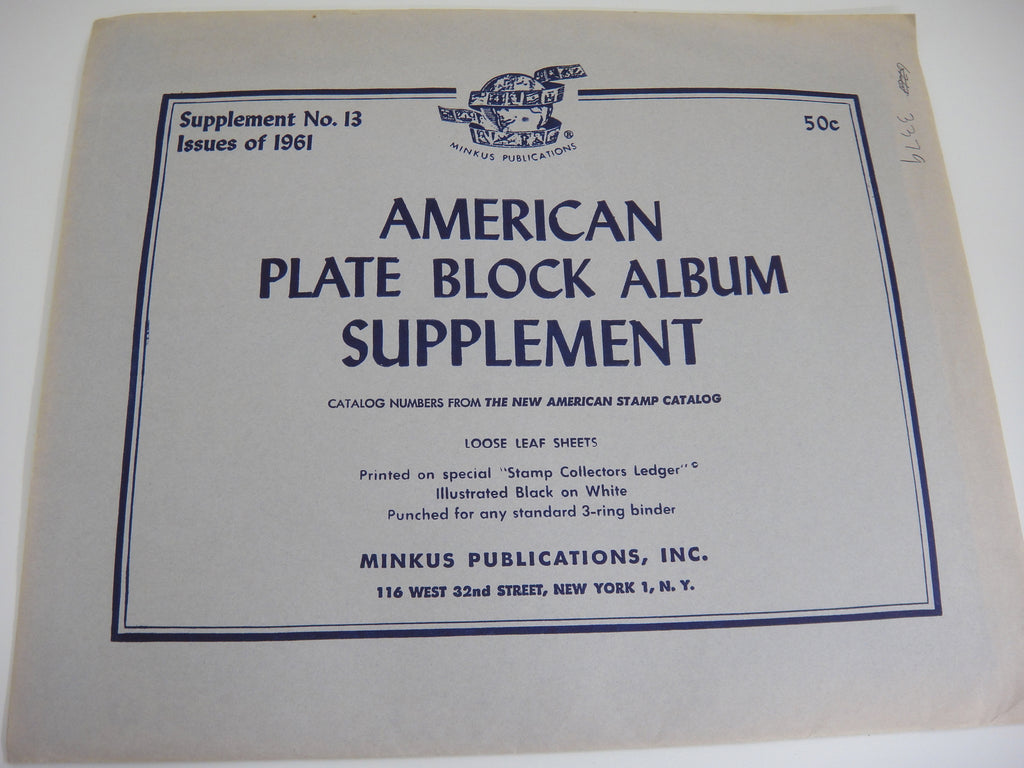 Minkus 1961 American Plate Blocks Album Supplement 13 NOS