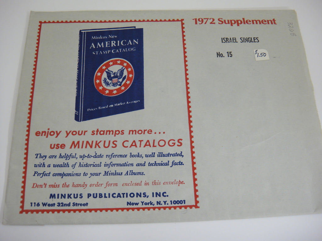 Minkus 1972 Israel Singles Stamp Album Supplement 15 MIS72 NOS