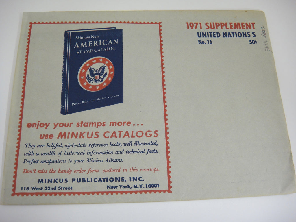 Minkus 1971 Singles Stamp Album Supplement 16 United Nations NOS