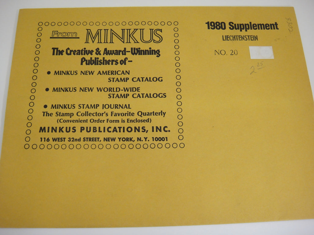 Minkus 1980 Liechtenstein Stamp Album Supplement 20 NOS