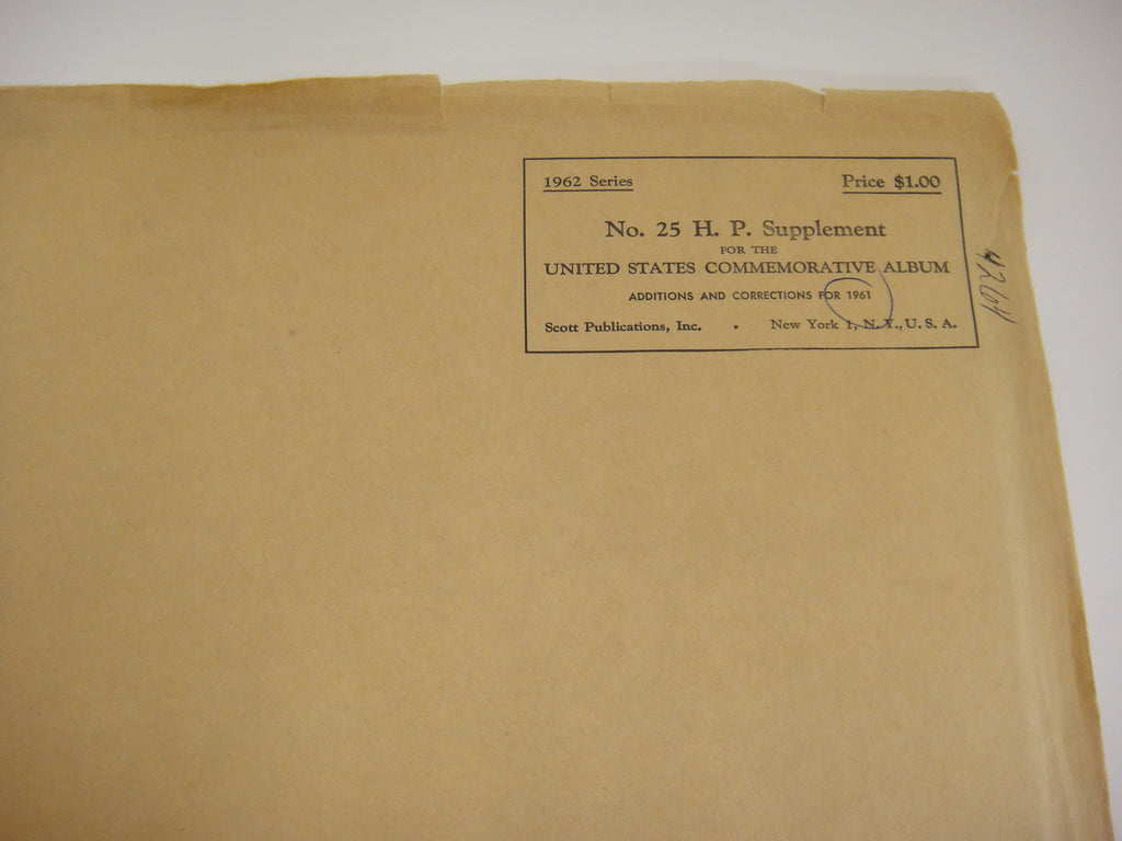 Brand: Scott Series: National Country: United States Year: 1961 Pages: 9, plus a few blanks pages Product#: Supplement#: 25 Stock#: 4264 Notes: Additions and corrections for 1961 (appears to be same as "Commemorative Singles & Blocks of 4" pages)