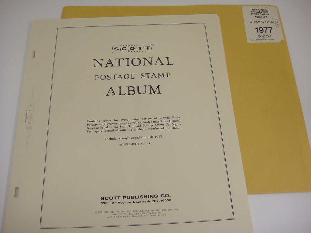 Brand: Scott Series: National Country: United States Year: 1977 Pages: 8 Product#: 100SH77 Supplement#: H7 (same as #45) Stock#: 3992 Notes: Stamp issues thru 1977; no mounts or hinges required