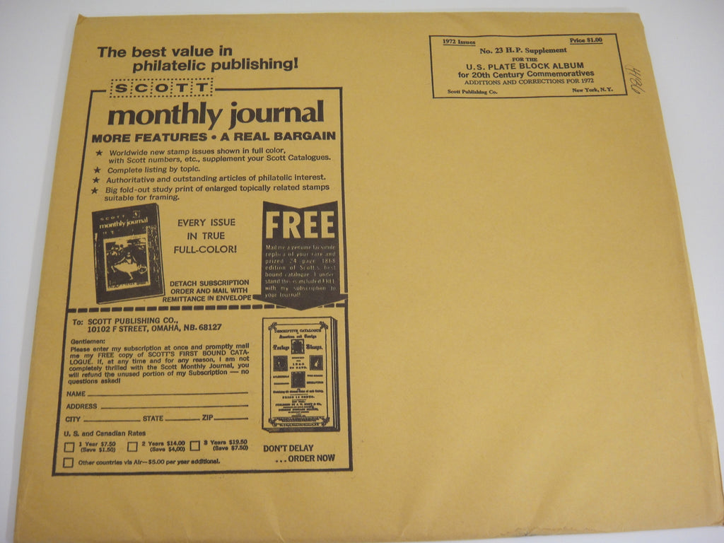 Brand: Scott Series: National Country: United States Year: 1972 Pages: 16 Product#: Supplement#: 23 Stock#: 4186 Notes: Additions and corrections for 1972