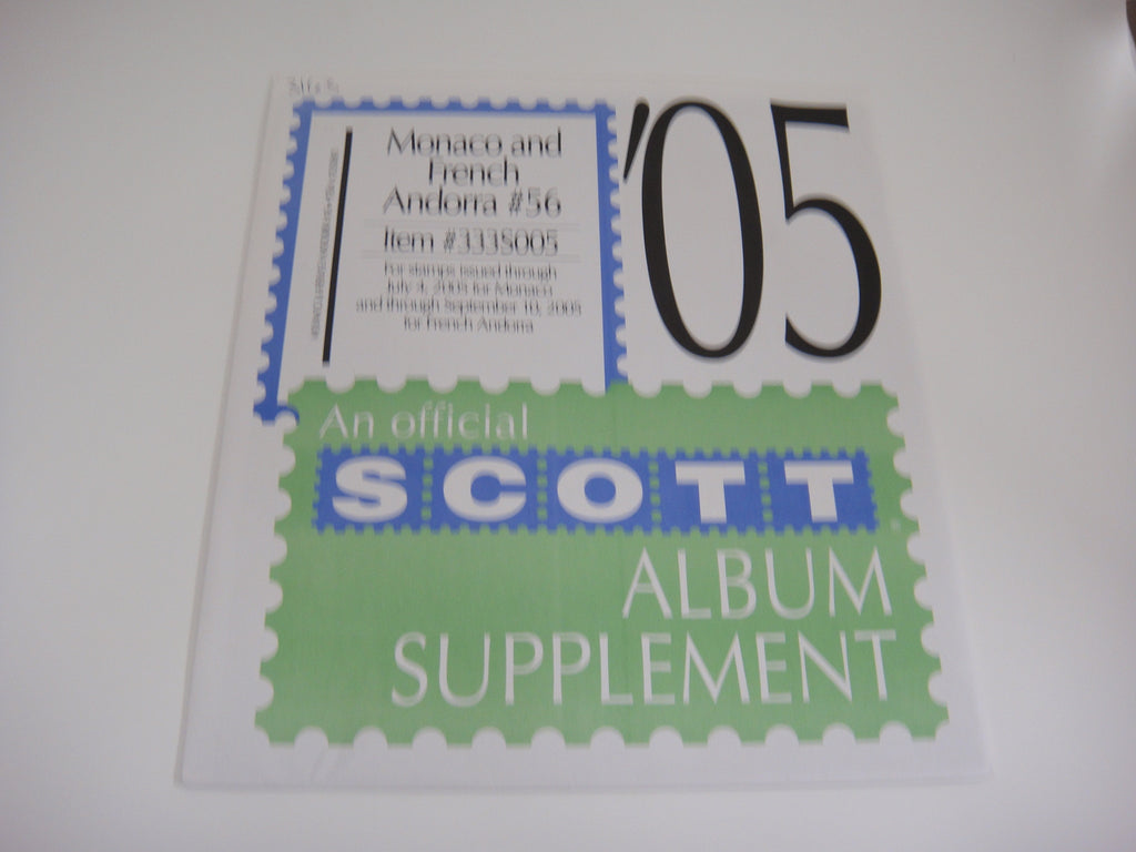Brand: Scott Series: Specialty Country: Monaco and French Andorra Year: 2005 Pages: 7 Product#: 333S005 Supplement#: 56 Stock#: 3163 Notes: For stamps issued through July 4, 2005 for Monaco and through September 10, 2005 for French Andorra