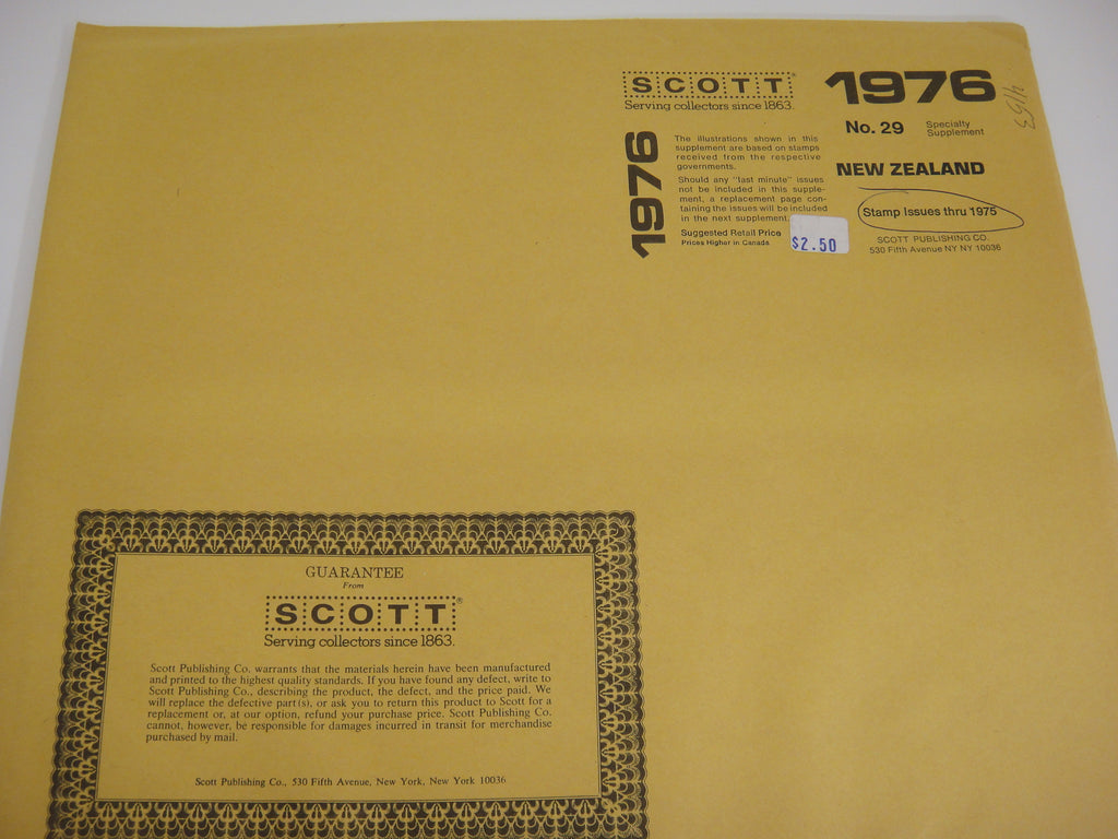 Brand: Scott Series: Specialty Country: New Zealand Year: 1975 Pages: 13 Product#: Supplement#: 29 Stock#: 4153 Notes: Stamp issues thru 1975; appear to be part of "New Zealand and Dependencies" supplement run