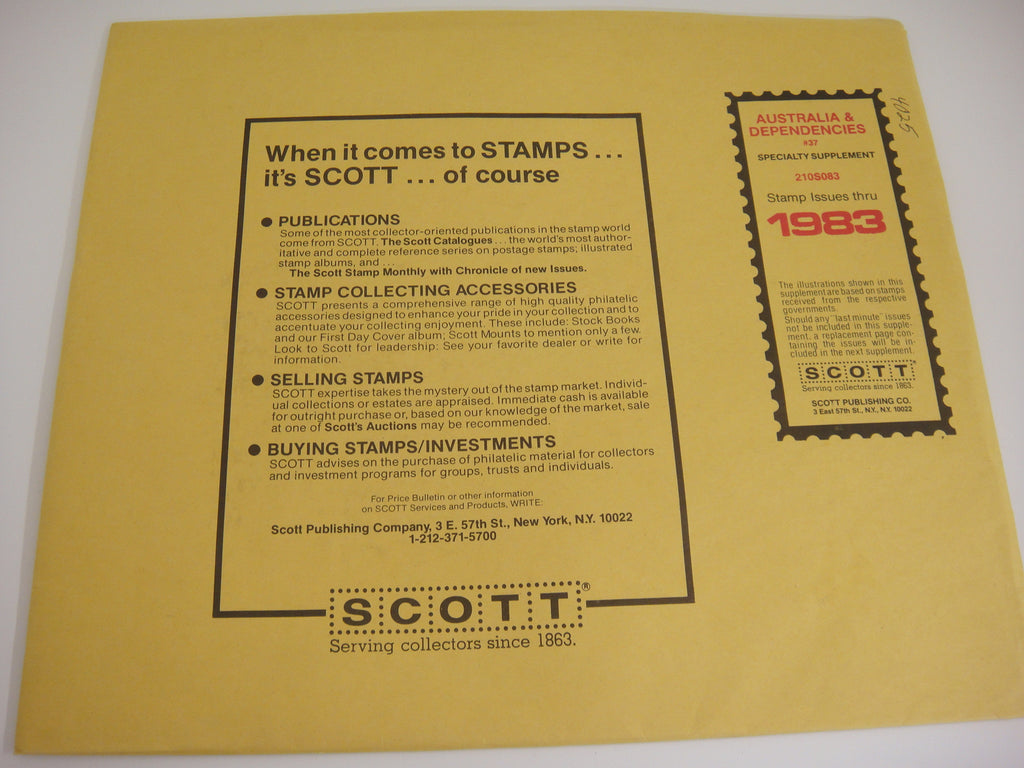 Brand: Scott Series: Specialty Country: Australia & Dependencies Year: 1983 Pages: Product#: 210S083 Supplement#: 37 Stock#: 4025 Notes: Stamp issues thru 1983; same as "Australia" only pages (same first half of product number)