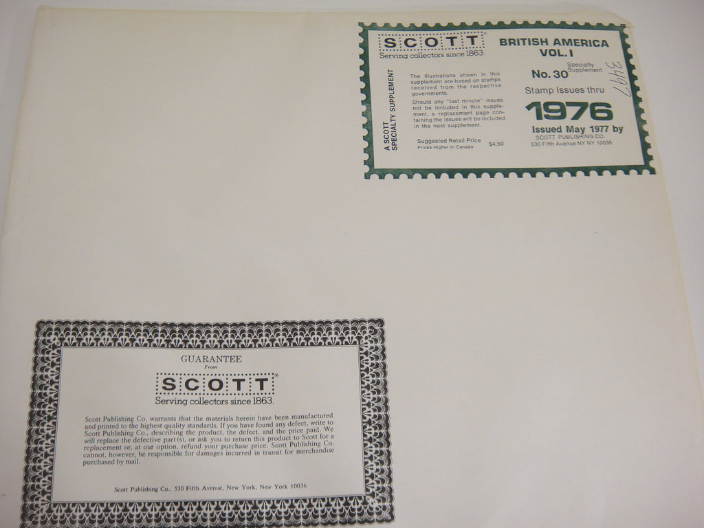 Scott 1976 British America Specialty Stamp Supplement 30 Volume I NOS