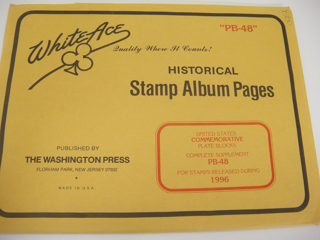 Brand: White Ace Series: Commemorative Plate Blocks Country: United States Year: 1996 Pages: 786-814 Product#: PB-48 Supplement#: Stock#: 1580 Notes: New old stock