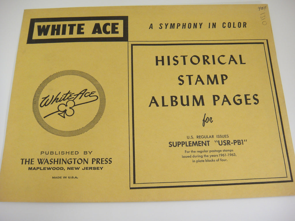 Brand: White Ace Series: Regular Issues, blocks of 4 Country: United States Year: 1961 Pages: 1 Product#: USR-PB1 Supplement#: Stock#: 1310 Notes: For the regular postage stamps issued during 1961-1963, in plate blocks of four